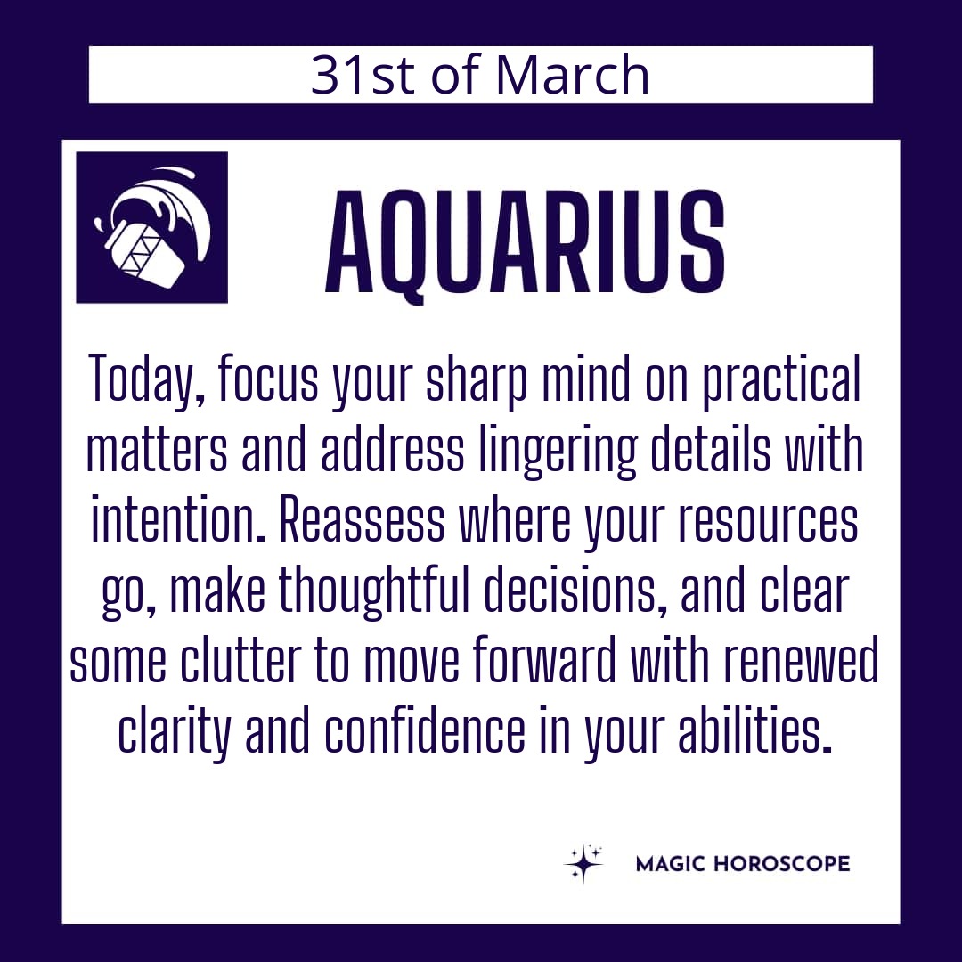 Today brings a practical edge, Aquarius. Your mind is sharp, and you’re ready to tackle the details that have been waiting for your attention. There’s a sense of clarity in the air, as if the fog has lifted and you can finally see the small steps that need to be taken. Money, work, and daily responsibilities may feel more pressing than usual, but there’s an opportunity here to make decisions that support your long-term goals. Even if the weight of these obligations feels heavy, remember that each task you complete is a building block for the future you envision. Avoid the temptation to rush or cut corners; instead, approach each task with intention, knowing that your careful effort now will pay off in ways you may not yet see.