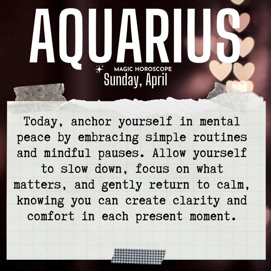Mental peace is your anchor today, Aquarius. The world can feel noisy and demanding, pulling your attention in a hundred directions, each one clamoring for your energy and focus. It’s so easy to get swept up in distractions, to feel as though you must respond to every message, every expectation, every fleeting thought. Yet beneath all this noise, your mind quietly craves stillness, a gentle pause from the relentless pace. Give yourself permission to slow down, to step back from the chaos, and to focus on what truly matters to your heart. Allow yourself to let the rest fall away, even if only for a little while, trusting that you are not missing out but rather coming home to yourself.