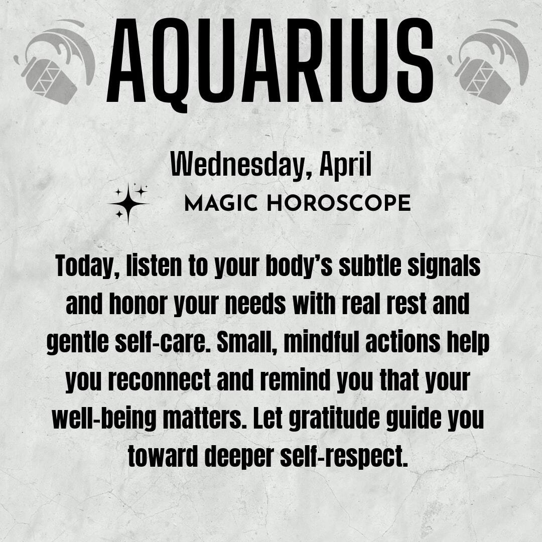 You’re being called to listen to your body today, Aquarius. The signals are subtle but persistent—a little tension in your shoulders, a craving for fresh air, a thirst that’s more than physical. Perhaps you notice a heaviness in your limbs or a restlessness that lingers just beneath the surface. You’ve been pushing through, determined to meet your responsibilities and keep up with the pace of life, but your energy isn’t infinite. There is a quiet wisdom in recognizing your limits, in acknowledging that even your vibrant spirit needs moments of rest and renewal. Notice where you’re running low, and let yourself pause. Self-care isn’t a luxury; it’s the foundation for everything else you want to build. When you honor your needs, you send yourself a message: I matter.