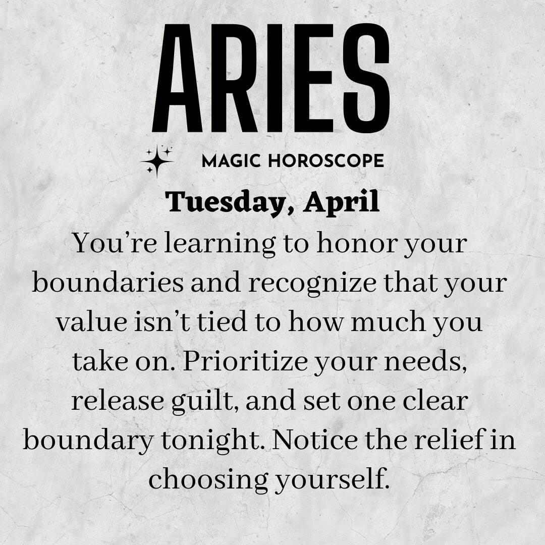 You’re learning the power of boundaries today, Aries. This lesson may feel both liberating and uncomfortable, as you realize how often you’ve stretched yourself to accommodate others. It’s tempting to say yes to everything, to carry more than your share, to be the one everyone relies on. But your worth isn’t measured by how much you can handle or how many burdens you can shoulder. Instead, it’s reflected in how gently you treat yourself and how honestly you acknowledge your own needs. Notice where you’re feeling stretched thin or resentful, where your energy feels depleted or your spirit feels heavy. These are signs that something needs to shift, gentle reminders from your inner self that you deserve care, too.