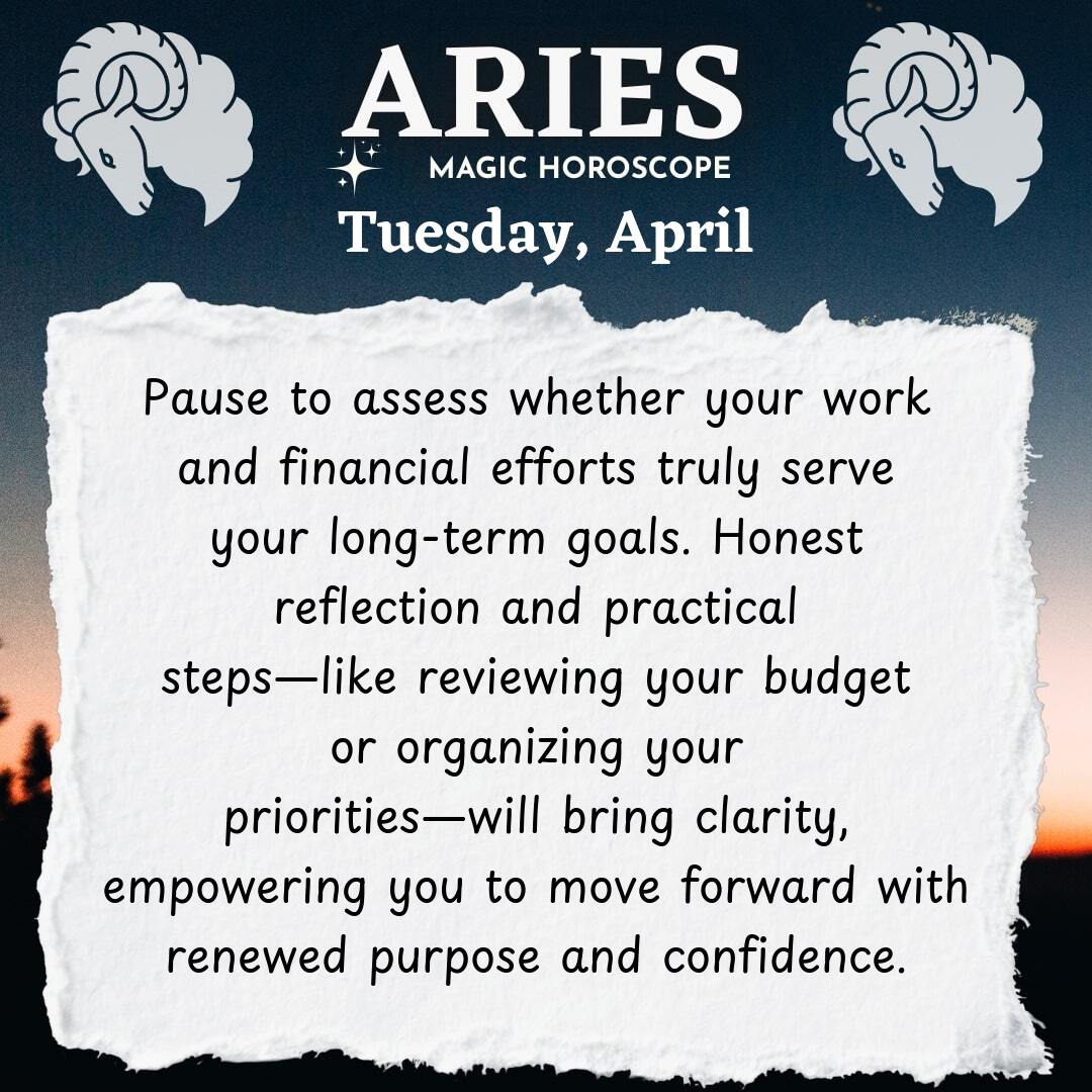 Today brings a spotlight to your work and finances, Aries. You’re known for your boldness, but sometimes the most courageous move is to pause and assess. In a world that often rewards constant motion, it can feel counterintuitive to slow down, yet this is where your true strength lies. Are your current efforts aligned with your long-term goals, or are you just keeping busy to avoid uncomfortable questions? It’s time to get practical and make decisions that support your future, not just your present. The universe is gently nudging you to look beyond the immediate rush and consider the foundation you are building for yourself.