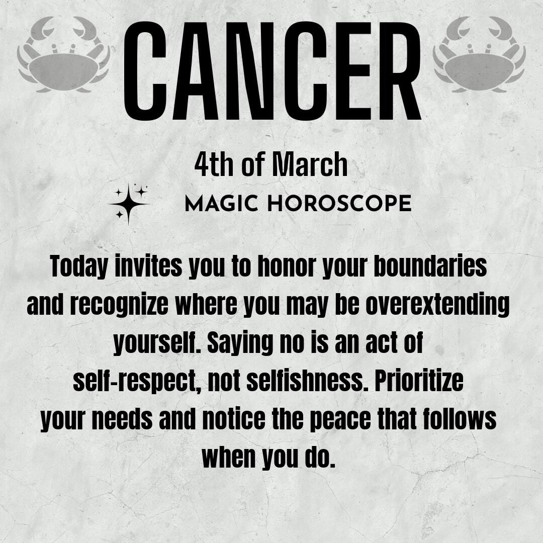 Today is about boundaries, Cancer—where you end and others begin. You may notice old patterns resurfacing, the urge to say yes when you mean no, or to carry responsibilities that aren’t truly yours. It’s not selfish to protect your energy; it’s essential. Your worth isn’t measured by how much you give away..