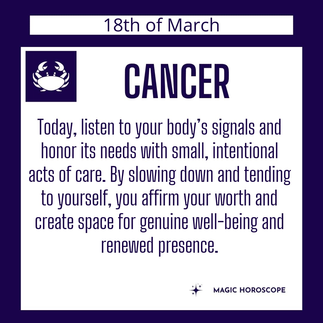 You’re being called to listen to your body today, Cancer. The subtle aches, the tiredness, the hunger for something nourishing—these are not just background noise. They’re messages, gentle reminders that your physical self needs your attention. You may have been pushing through, telling yourself you’ll rest later, but your body is wiser than your schedule. Notice how you feel when you slow down, even for a moment. There’s a difference between surviving and truly caring for yourself. Sometimes, the world moves so quickly that you forget your body is not a machine, but a living, breathing companion that carries you through every experience.