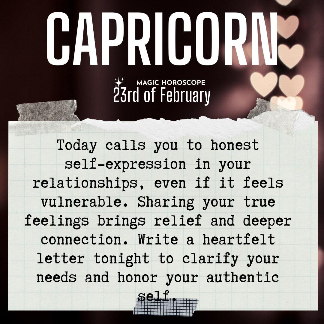 Love asks for honesty today, Capricorn. You may find yourself reflecting on the state of your closest relationships, noticing where things feel clear and where confusion lingers. It’s tempting to keep the peace by staying silent, but your heart is craving real connection, not just surface harmony. Emotional clarity is a gift you give both to yourself and to those you care about..