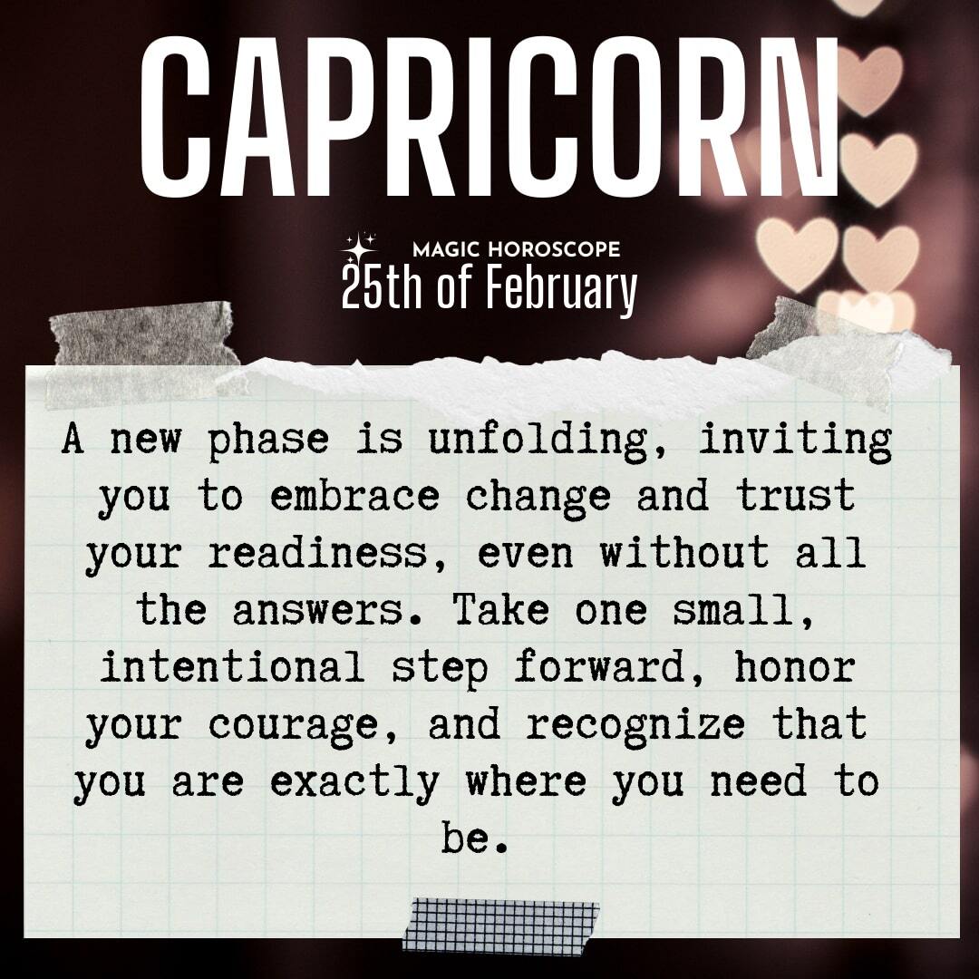A new chapter is opening for you, Capricorn, and the energy is ripe for change. You may feel a sense of anticipation, a quiet excitement about what’s possible. Opportunities are emerging—some expected, some surprising. The key is to stay open, to trust that you’re ready for what’s next, even if you don’t have all the details figured out..