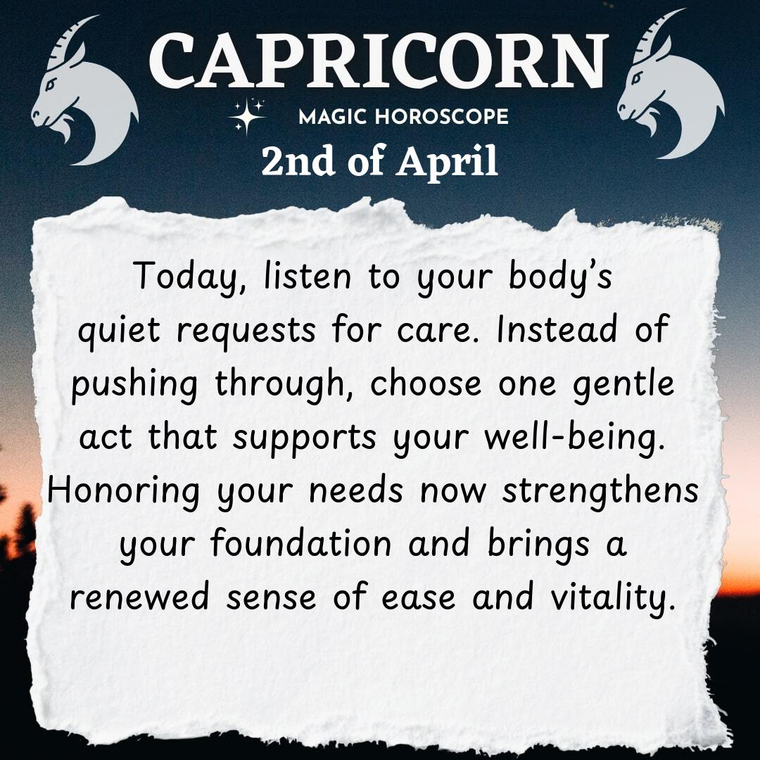 You’re being called to check in with your body today, Capricorn. The pace you keep is admirable, and your determination often inspires those around you, but your physical self is quietly asking for more attention. Sometimes, in your drive to accomplish and achieve, you may overlook the gentle whispers your body sends you. Notice the subtle signals—tension in your shoulders that seems to build throughout the day, a tiredness that lingers even after a full night’s sleep, or a craving for something nourishing and comforting. These are not inconveniences to push through, but invitations to reconnect with yourself on a deeper level. Your body is your foundation, and it’s time to honor it with the same dedication you give to your goals.