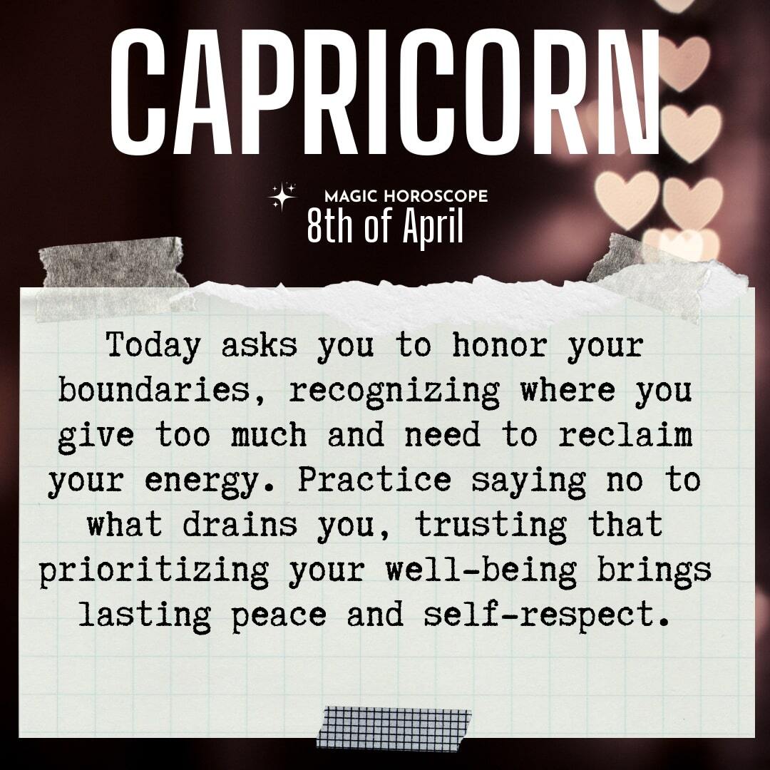 You are worthy of care, Capricorn. The boundaries you set today will shape the peace you feel tomorrow. Each act of self-respect builds a foundation for a more authentic, fulfilling life. Remember, your needs matter just as much as anyone else’s, and honoring them is an act of courage.
