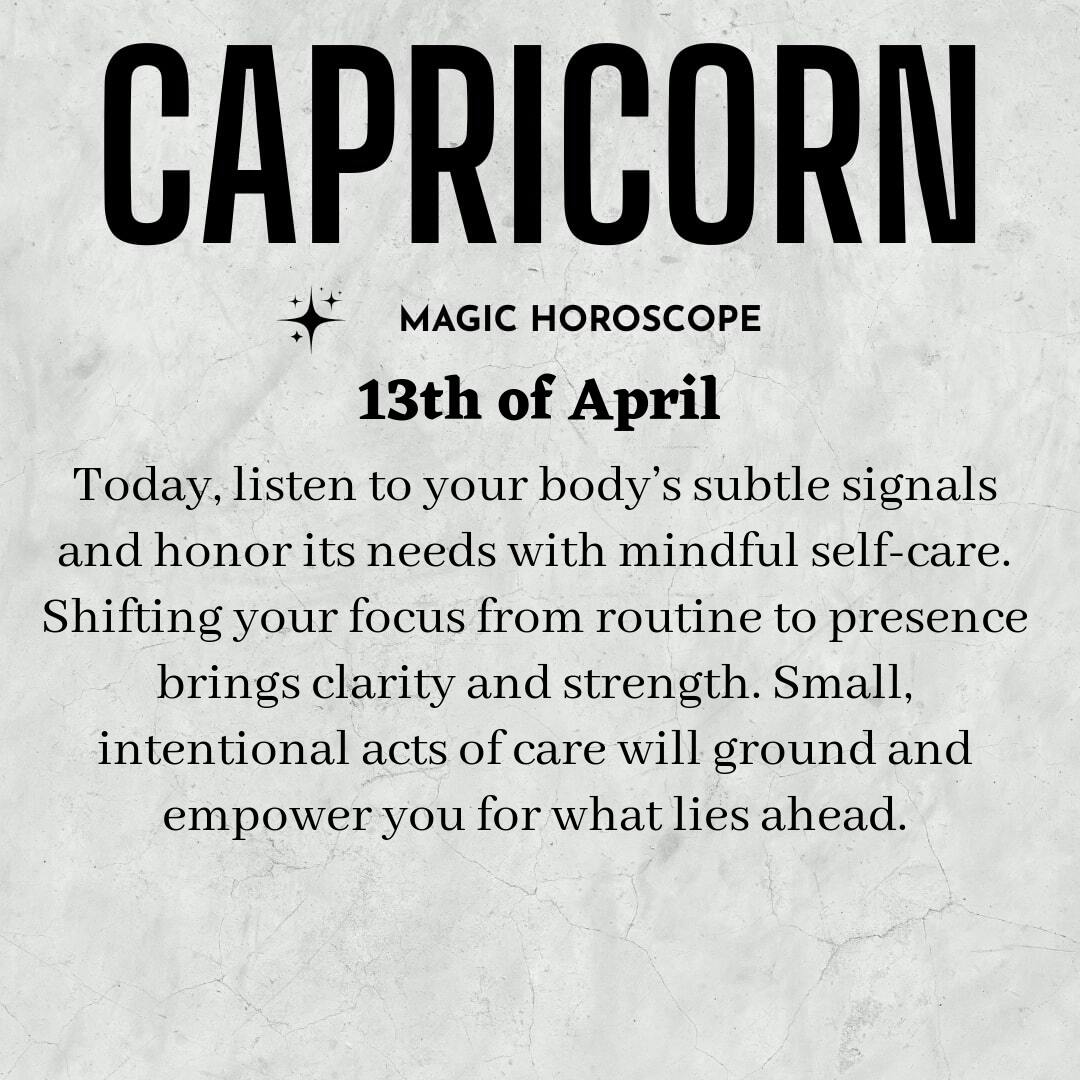 You’re being called to check in with your body today, Capricorn. The pace you keep is admirable, and your determination often inspires those around you, but your physical self is quietly asking for more attention than you may realize. Notice the subtle signals—tension in your shoulders that seems to build throughout the day, a tiredness that lingers even after a full night’s sleep, or a craving for something nourishing that you might usually ignore. These are not inconveniences to push through or dismiss in the name of productivity, but gentle invitations to reconnect with yourself on a deeper, more compassionate level. When you honor your body’s needs, you honor your own resilience and acknowledge the strength it takes to care for yourself.