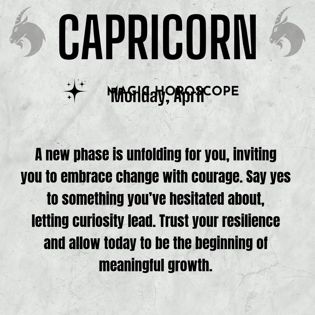 A new chapter is opening for you, Capricorn. You may feel the subtle tremors of change beneath your feet, a gentle but persistent nudge from the universe urging you forward. Change can feel unsettling, stirring up old fears and uncertainties, but it’s also full of possibility, like the first breath of spring after a long winter. You may sense a shift in the air—a fresh opportunity, a new connection, or a chance to try something different, something that calls to a deeper part of you. The old ways have served you well, providing comfort and stability, but now it’s time to step forward with courage, to trust that the unknown holds gifts you cannot yet imagine.