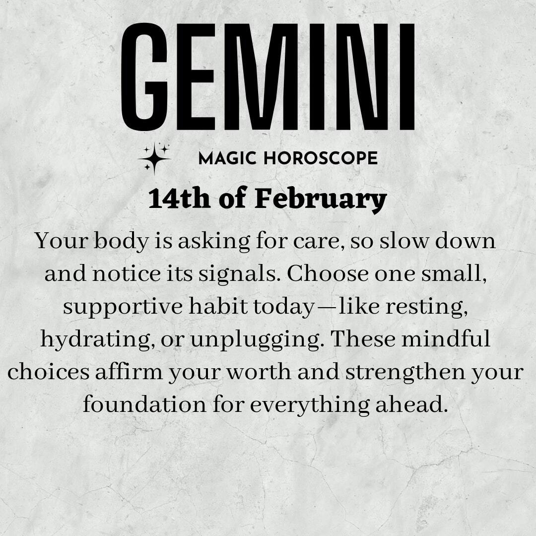 You’ve been moving fast lately, Gemini, and your body is quietly asking for your attention. Today, notice the small signals—tension in your shoulders, a flutter of restlessness, the way your breath shortens when you’re distracted. These are invitations to slow down and reconnect with yourself. Self-care isn’t just a buzzword; it’s a way to honor the vessel that carries you through every experience. .