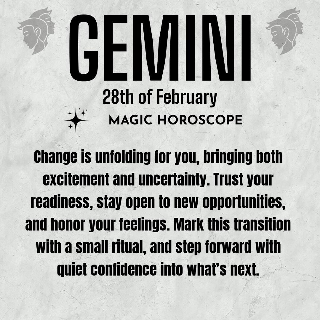 A new chapter is opening for you, Gemini. Change is in the air—maybe subtle, maybe bold, but unmistakable. You might feel a mix of excitement and uncertainty, wondering what’s next or if you’re ready. Trust that you are. Growth rarely arrives with a roadmap; it asks you to step forward, even when the path isn’t fully clear..