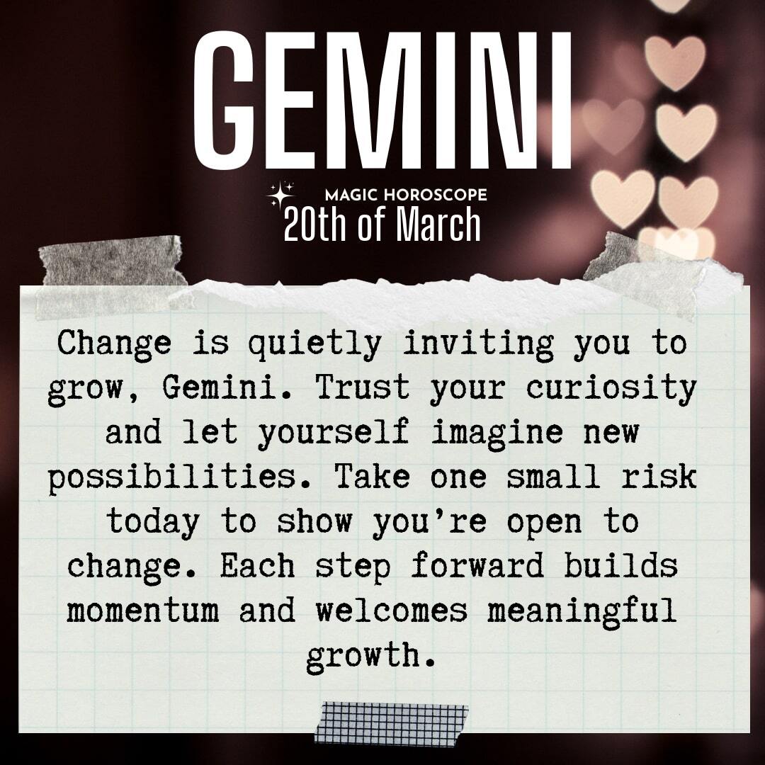 A new chapter is quietly unfolding, Gemini. Change doesn’t always announce itself with fanfare; sometimes it arrives as a subtle nudge, a sense that something fresh is possible. You may notice it in the gentle restlessness that stirs within you, or in the quiet curiosity that makes you look at your life from a slightly different angle. There might be moments when you catch yourself daydreaming about paths not yet taken, or feeling a sudden urge to revisit old dreams that once felt out of reach. Trust this impulse—it’s your spirit inviting you to grow, to stretch beyond the familiar and step into a space where new possibilities can take shape.