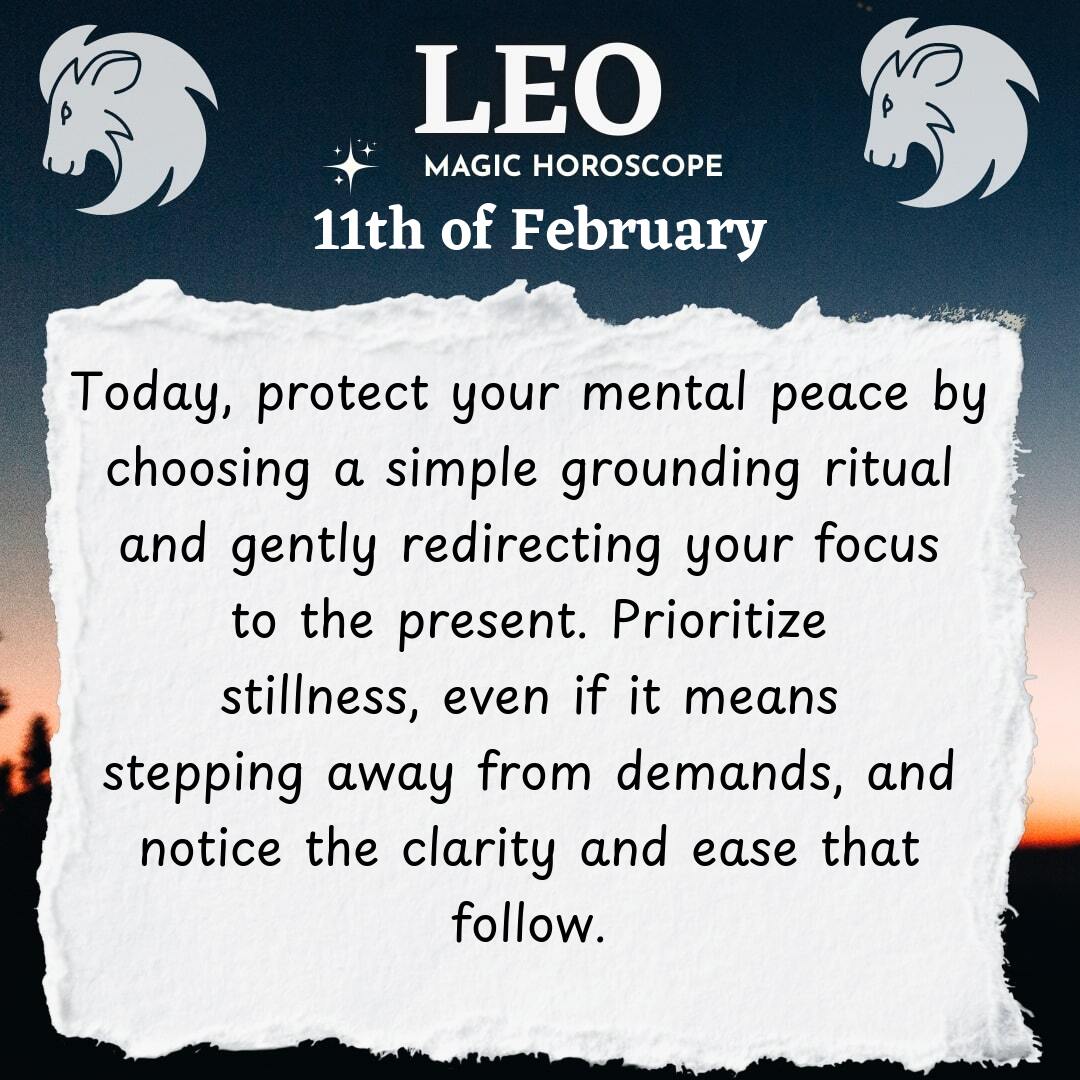 Mental peace is your anchor today, Leo. The world’s demands can scatter your focus, leaving you feeling stretched thin. It’s time to reclaim your attention and create a sanctuary in your daily routine. Notice where your mind wanders—worrying about the future, replaying the past, or getting lost in endless to-do lists..
