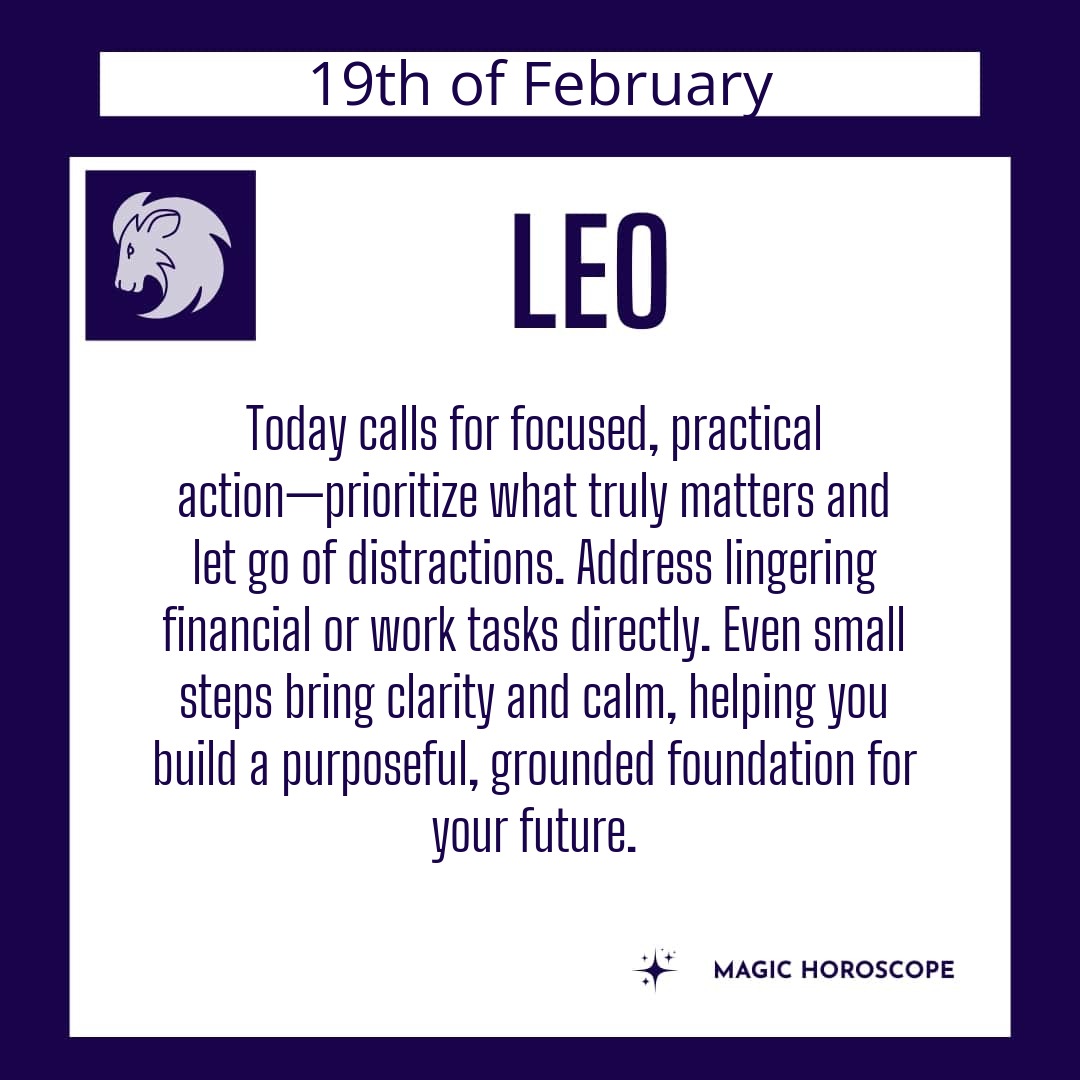 Your focus sharpens around practical matters today, Leo. Money, work, and the details of daily life demand your attention, and you’re ready to meet them head-on. There’s a sense of determination in your step—a quiet confidence that you can handle whatever comes your way. Still, it’s easy to get caught up in the hustle and forget the bigger picture..