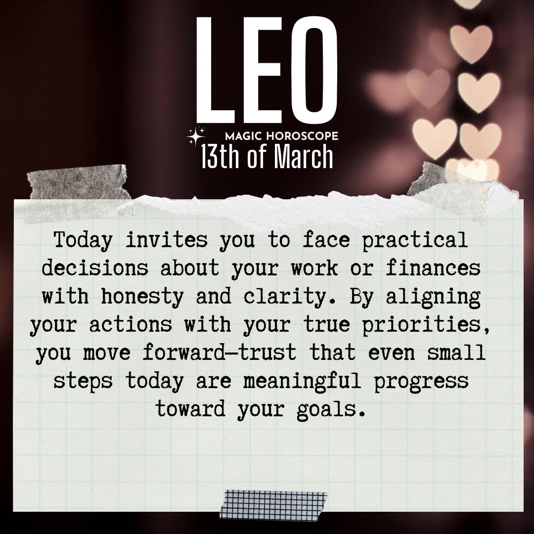 Today brings a spotlight to your work and finances, Leo. You may feel the urge to make a practical decision you’ve been postponing, a decision that has lingered in the back of your mind, quietly asking for your attention. Whether it’s about your job, a side project, or your budget, clarity is within reach if you’re willing to look at the facts with open eyes and an honest heart. There is a certain power in facing reality, even when it feels uncomfortable. Avoid wishful thinking—honesty with yourself is the most empowering move you can make, and it is the foundation upon which true progress is built.