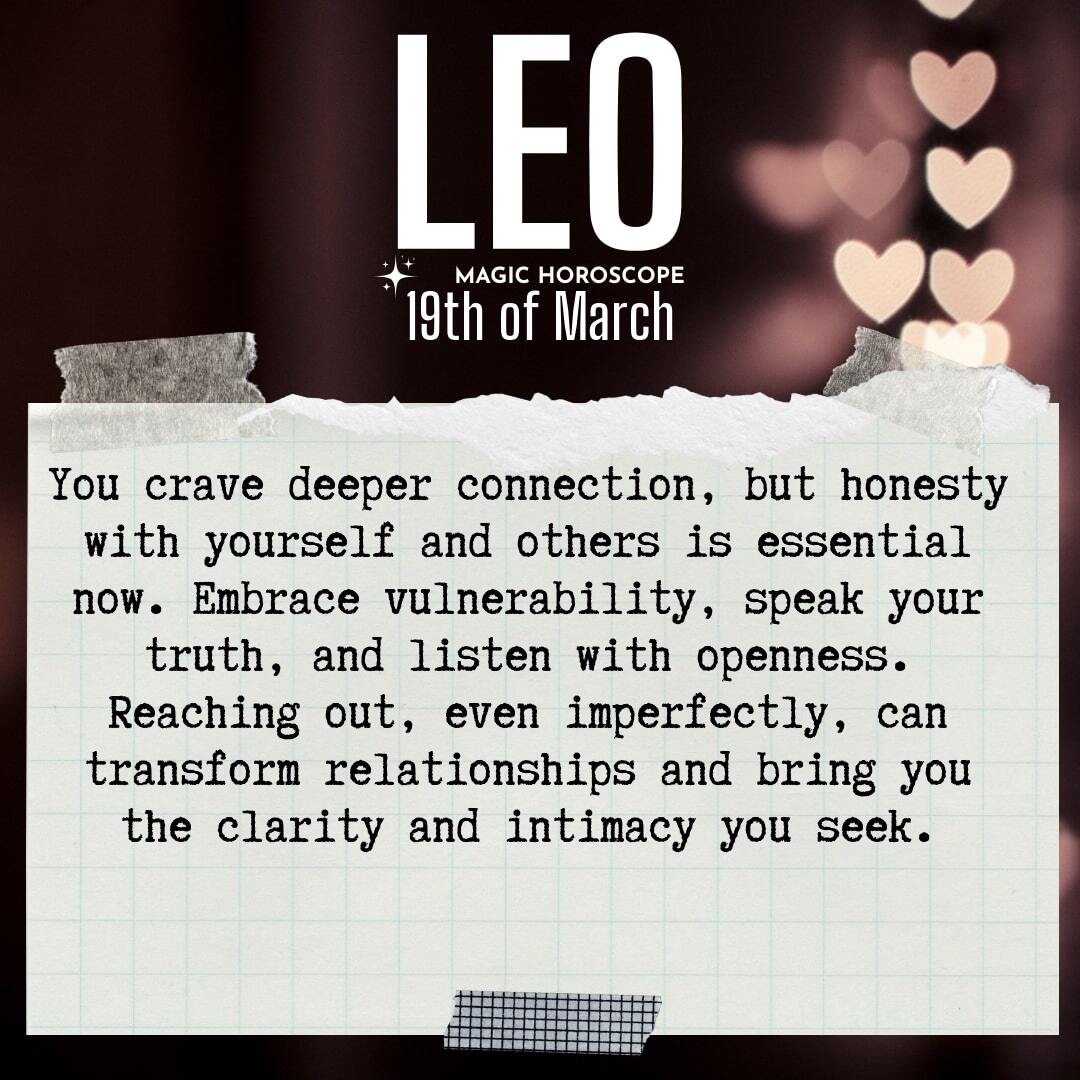 Love feels both tender and raw for you right now, Leo. There’s a longing for deeper connection, but also a need for honesty—with yourself and with others. You may sense that something unspoken lingers between you and someone close, a subtle tension that colors your interactions and leaves you wondering what remains unsaid. Instead of brushing it aside or distracting yourself with busyness, allow yourself to sit with the discomfort, to acknowledge the ache that comes from wanting more but fearing what truth might bring. Vulnerability is not weakness; it’s the doorway to real intimacy, the bridge that leads you from isolation to understanding.