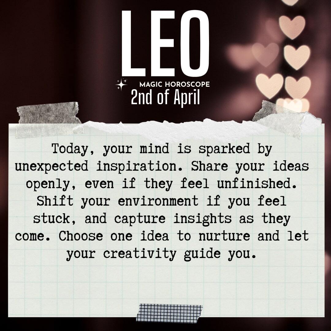 Your mind is alive with ideas today, Leo. There’s a vibrant energy pulsing beneath the surface, urging you to pay attention to the subtle nudges of inspiration that seem to appear out of nowhere. A song lyric might echo in your heart, stirring up emotions you didn’t realize were waiting to be felt. A passing conversation could spark a new line of thought, or a sudden memory might resurface, bringing with it a wave of creative possibility. Don’t dismiss these sparks, no matter how small or fleeting they may seem. They’re gentle invitations from the universe, encouraging you to explore new ways of thinking, creating, and expressing yourself—reminding you that your inner world is rich with potential.