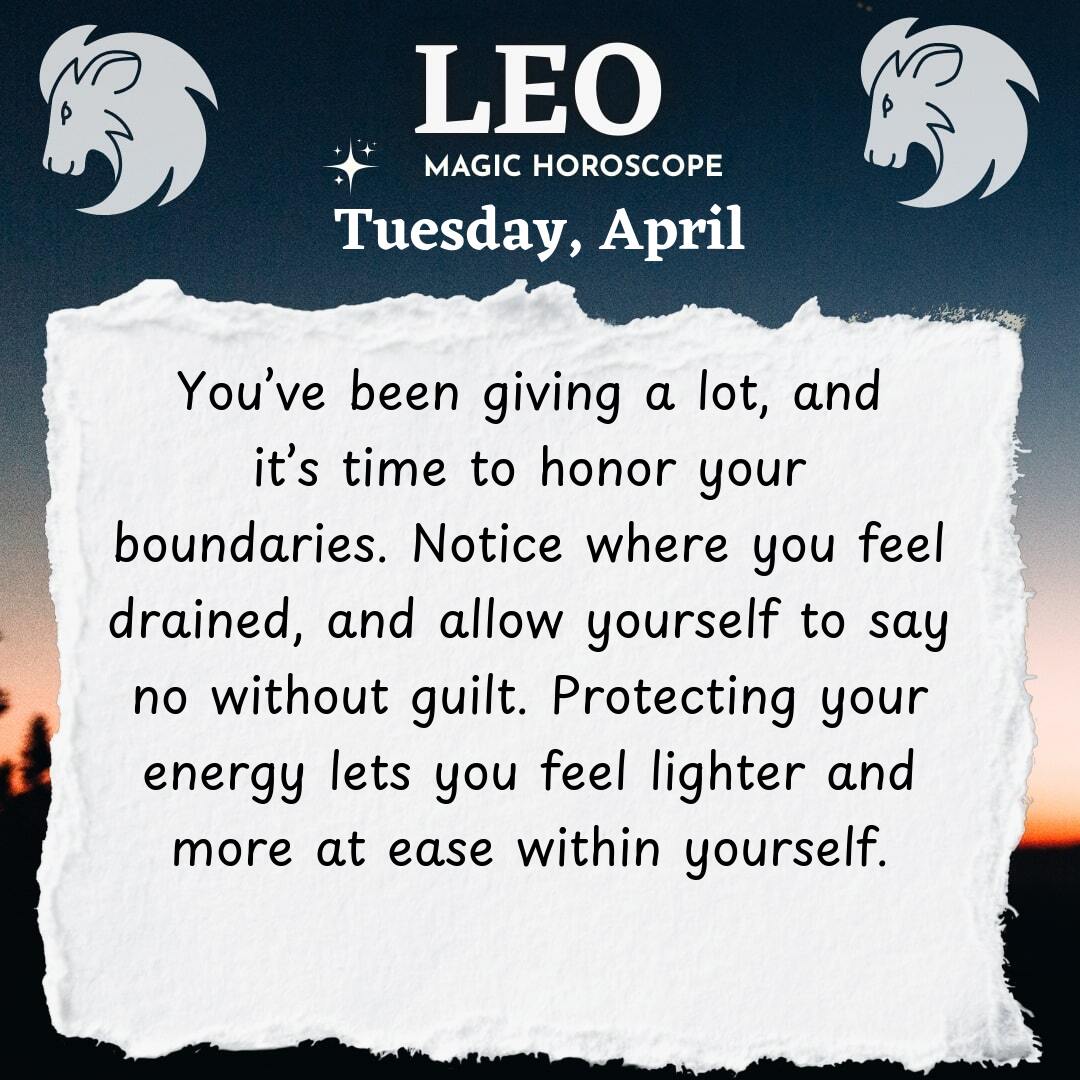 Honor your limits, Leo—protect your energy and let self-care guide you toward true balance today.