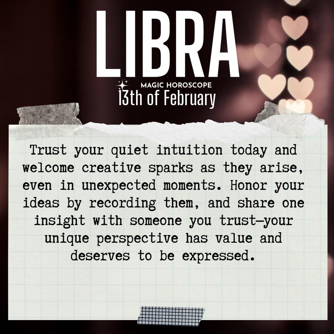 Today, share one creative thought or insight with someone you trust. You never know how your words might inspire another. Libra, your perspective is needed—don’t be afraid to let it shine..