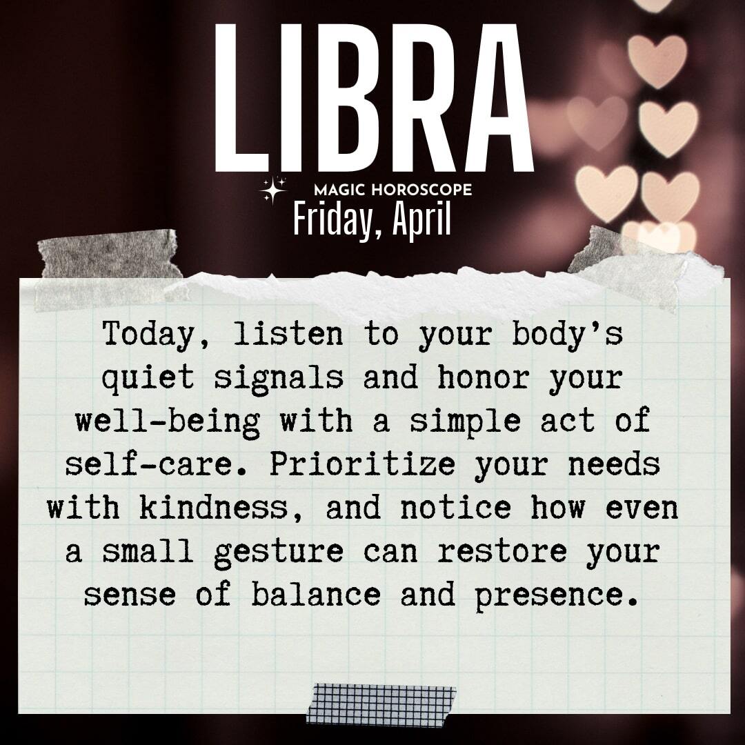 Trust that this gentle shift will grow over time. The more you listen to your body and honor its needs, the more you will find a sense of harmony that radiates outward. Today is just the beginning, a quiet invitation to treat yourself with the same compassion you so freely give to others. Let this be your new foundation, Libra—a promise to cherish your own well-being, one mindful moment at a time.