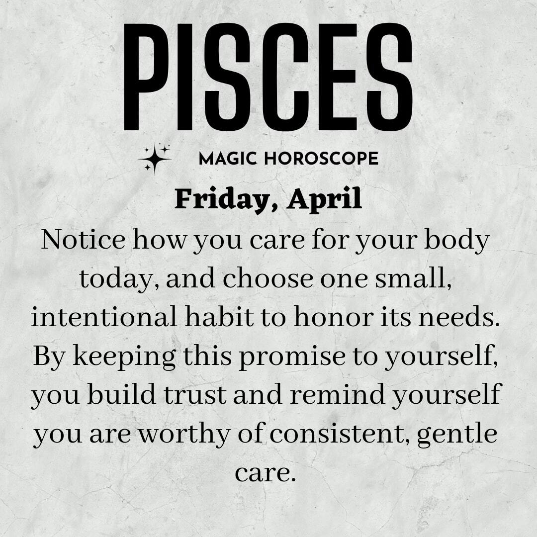 You’ve been feeling the subtle tug of your body asking for more attention, Pisces. There’s a quiet wisdom in the way your body speaks to you, sometimes through gentle aches, a flutter of restlessness, or a longing for comfort that you can’t quite name. Today, allow yourself to notice the small ways you care for yourself—or perhaps the ways you overlook your own needs—throughout the day. The way you move, what you choose to eat, how you breathe in moments of stress or calm, and even the words you whisper to yourself in passing all accumulate, shaping the landscape of your well-being. Your body is not just a vessel to carry you through life; it’s your home, your sanctuary, and it’s softly asking for a little more kindness and consistency from you.