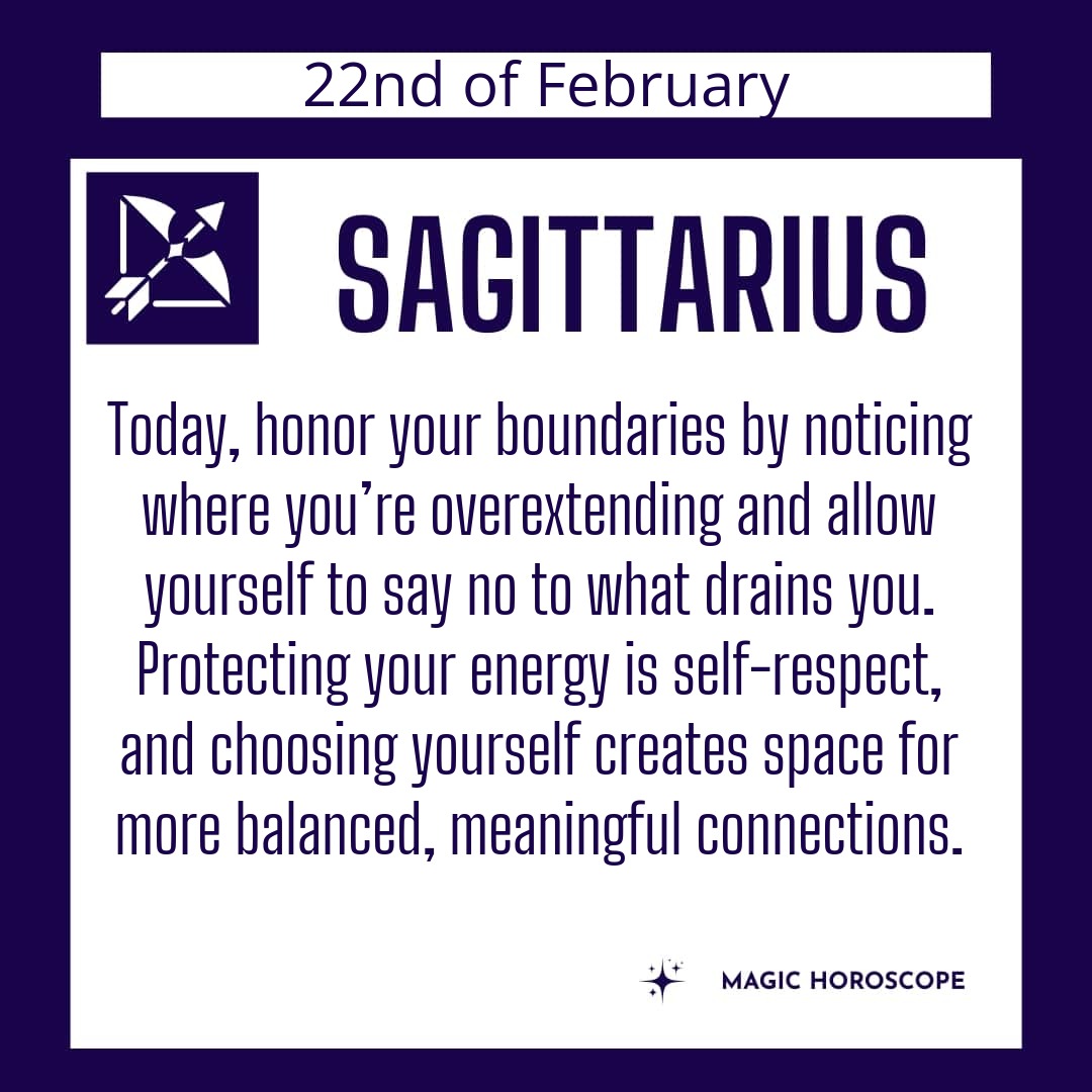 Boundaries are your focus today, Sagittarius. You’re generous by nature, often giving more than you realize. But lately, you may have noticed a heaviness—a sense that you’re carrying responsibilities that aren’t truly yours. It’s time to check in with your limits and honor your own needs..