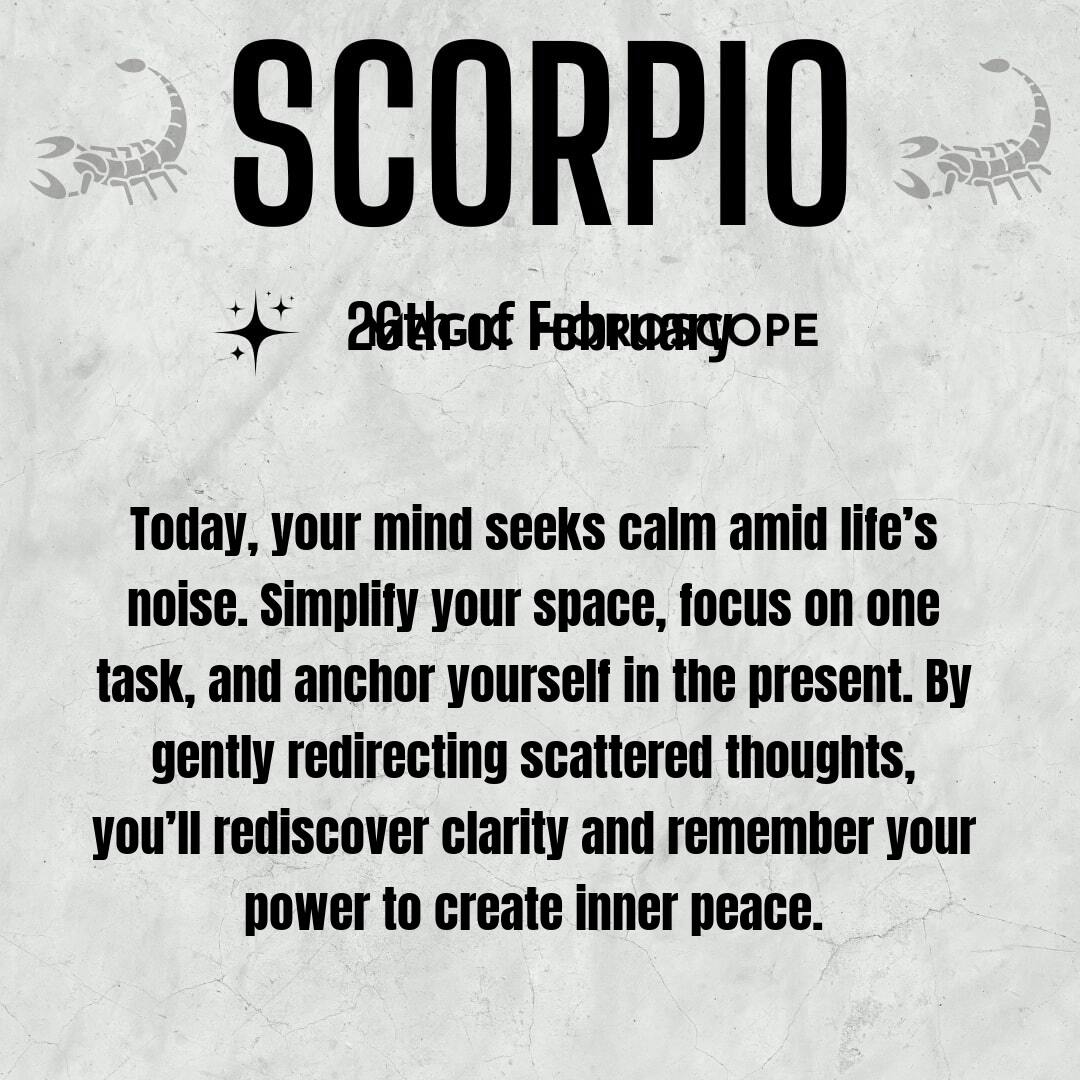 By evening, you’ll notice a subtle shift—a sense of calm, a clearer perspective, a lighter heart. This is the power of mental peace. Let it remind you that you can always return to yourself, no matter how busy life gets. You are your own sanctuary, Scorpio..