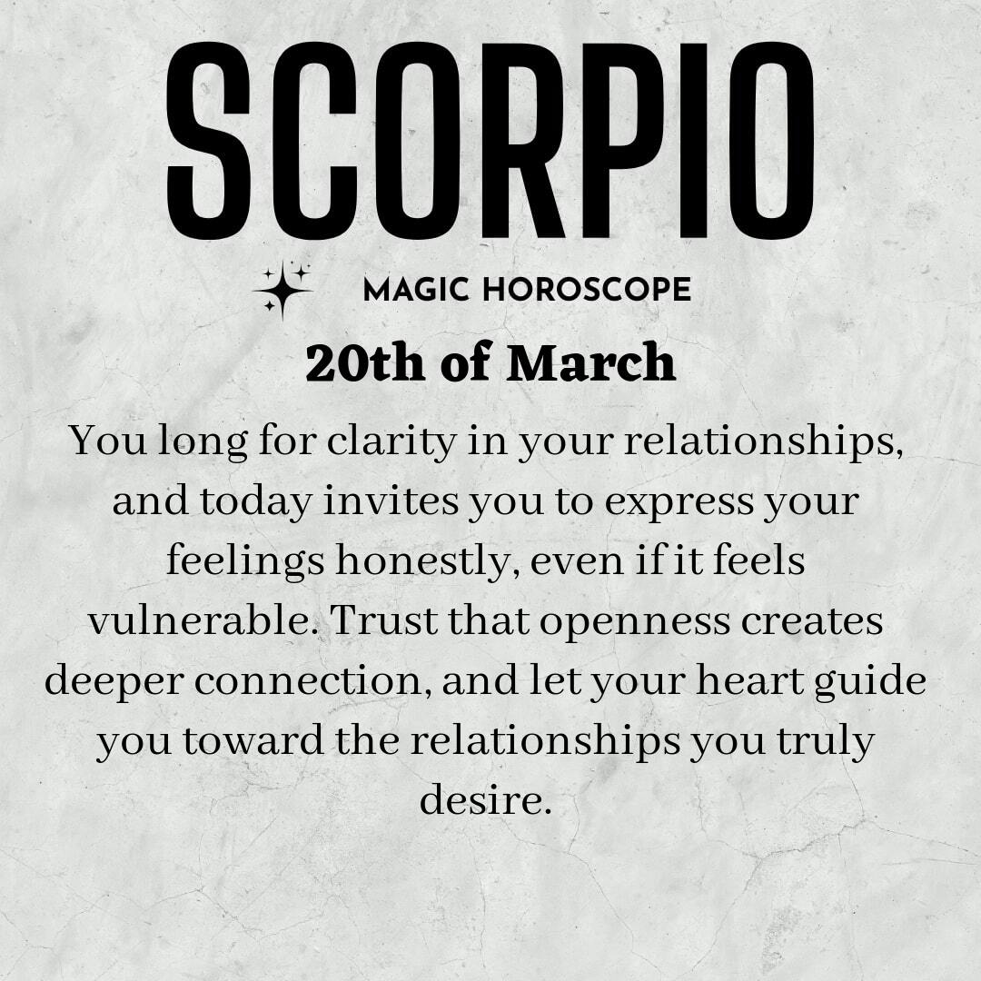 Remember, Scorpio, that your depth is a gift. Your capacity to feel so much is not a weakness, but a source of strength and wisdom. As you move through this day, honor your longing for clarity by embracing vulnerability. In doing so, you open yourself to the kind of love and understanding that your soul truly craves.