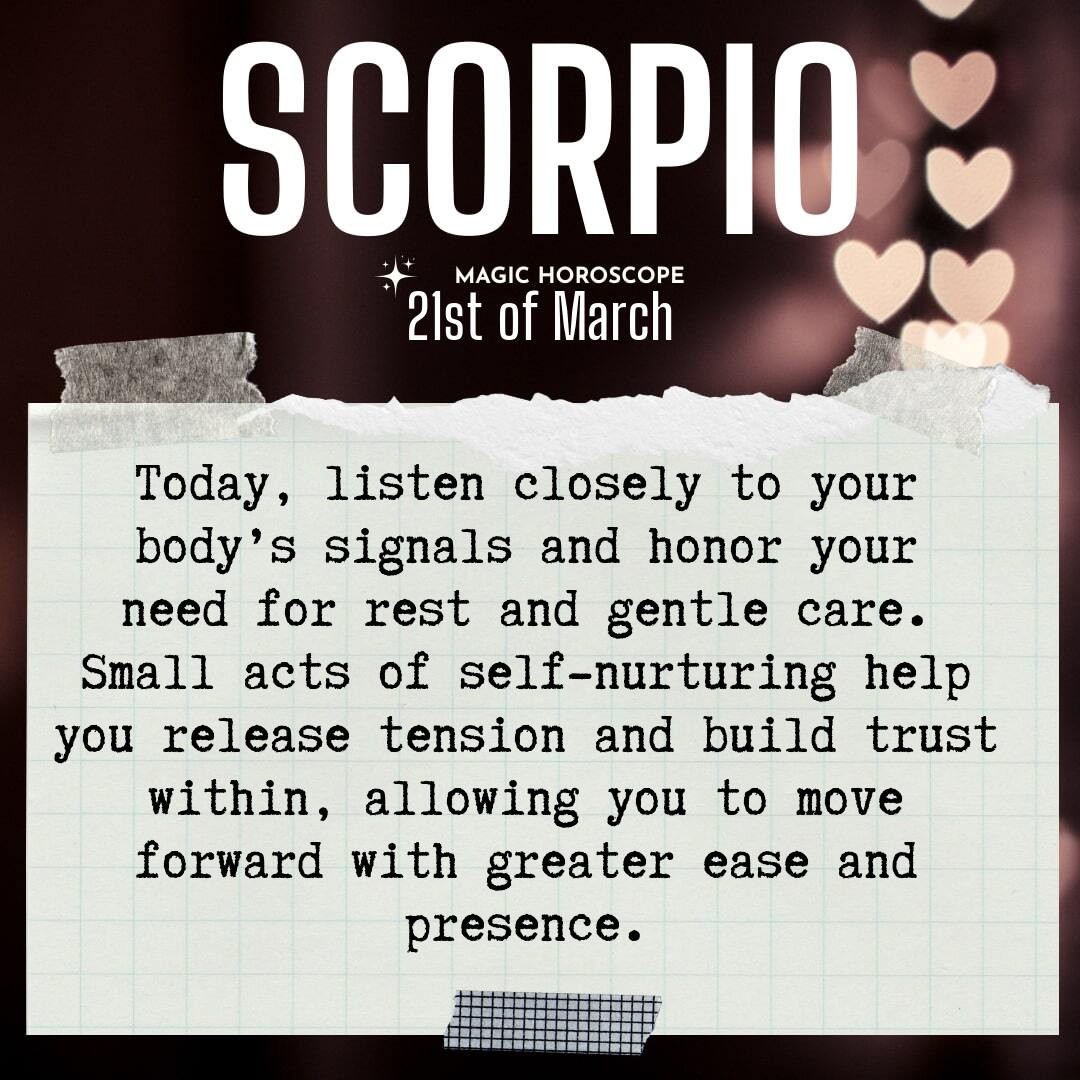 Remember, Scorpio, your body is your oldest companion, carrying you through every joy and sorrow. When you honor its needs, you honor your own spirit. Trust that by listening, by responding with care, you are creating space for deeper transformation. Today, let your self-compassion be the foundation upon which you build everything else.