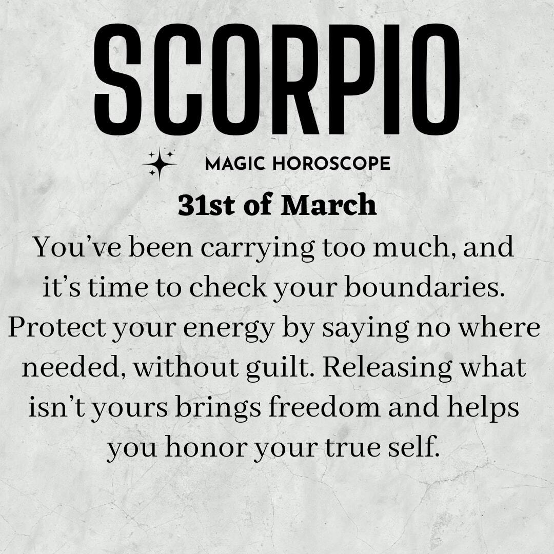 As you move through this process, notice how your energy shifts. With each boundary you set, you create more space for joy, creativity, and authentic connection. You begin to trust yourself more deeply, knowing that you are capable of both loving others and loving yourself. This is your invitation to step into your power, Scorpio, and to remember that your well-being is not a luxury—it is a necessity.