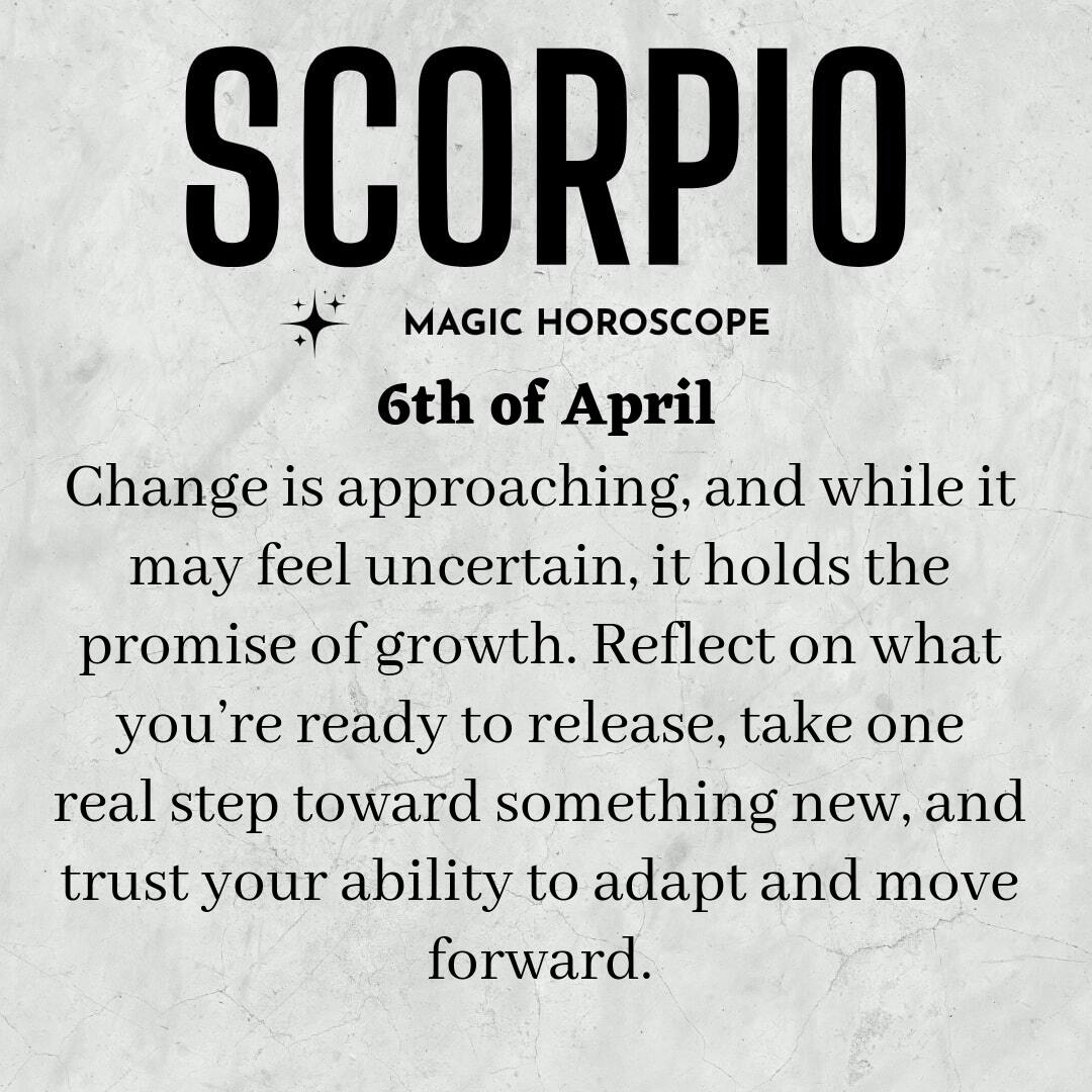 Change is in the air, Scorpio. You may sense a shift coming—a new opportunity, a fresh start, or simply a different way of seeing things. There’s a subtle electricity in the atmosphere, a feeling that something is stirring just beneath the surface of your daily life. It’s natural to feel both excitement and apprehension as you stand on the threshold of the unknown. The unknown can be intimidating, casting long shadows of doubt and uncertainty, but it’s also the very place where true growth happens, where you discover new strengths and hidden reserves of courage.