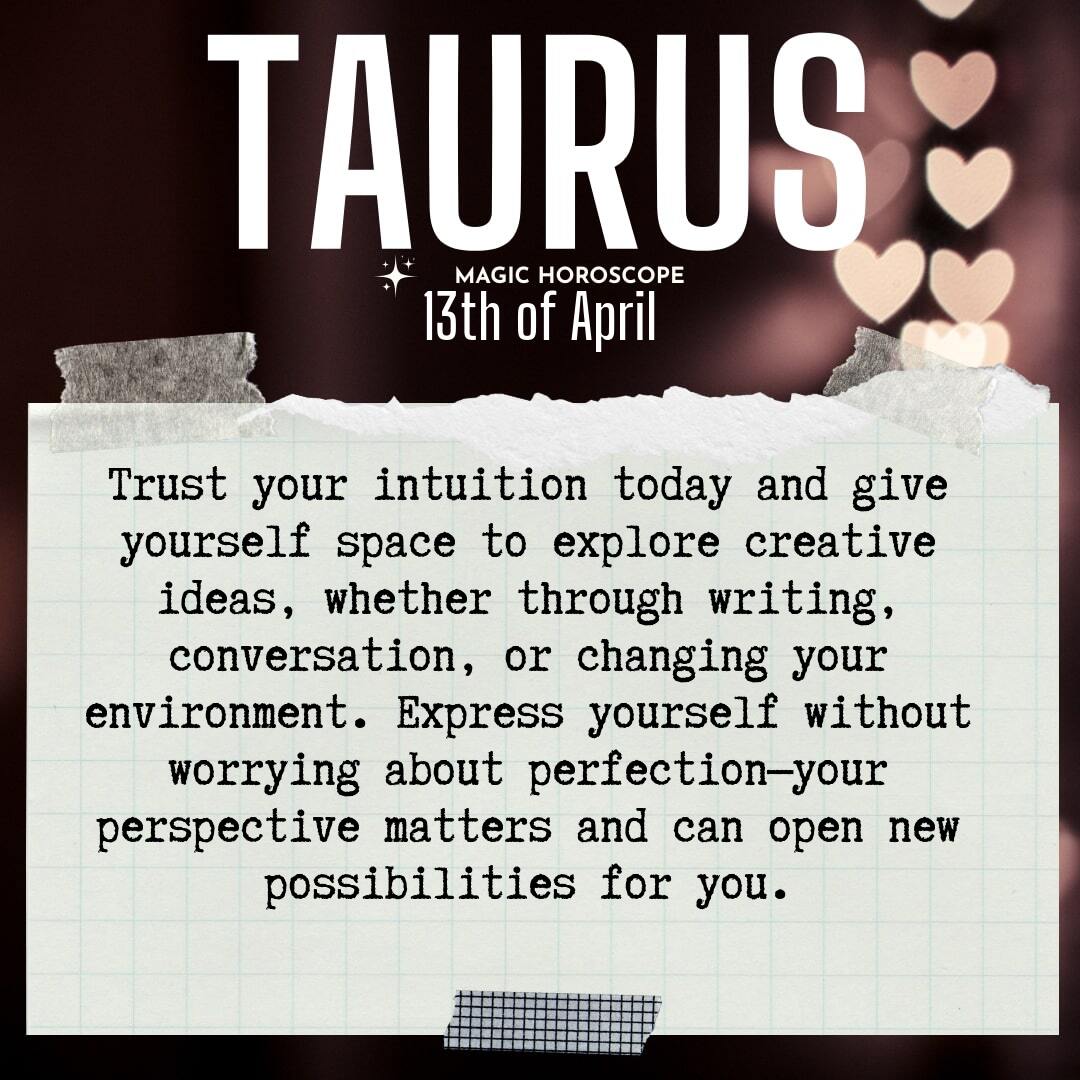 As you move through your day, carry this sense of openness with you. Let your intuition be your compass, gently steering you toward experiences and connections that nourish your spirit. The world is waiting for your light, Taurus, and today is an invitation to let it shine just a little bit brighter.
