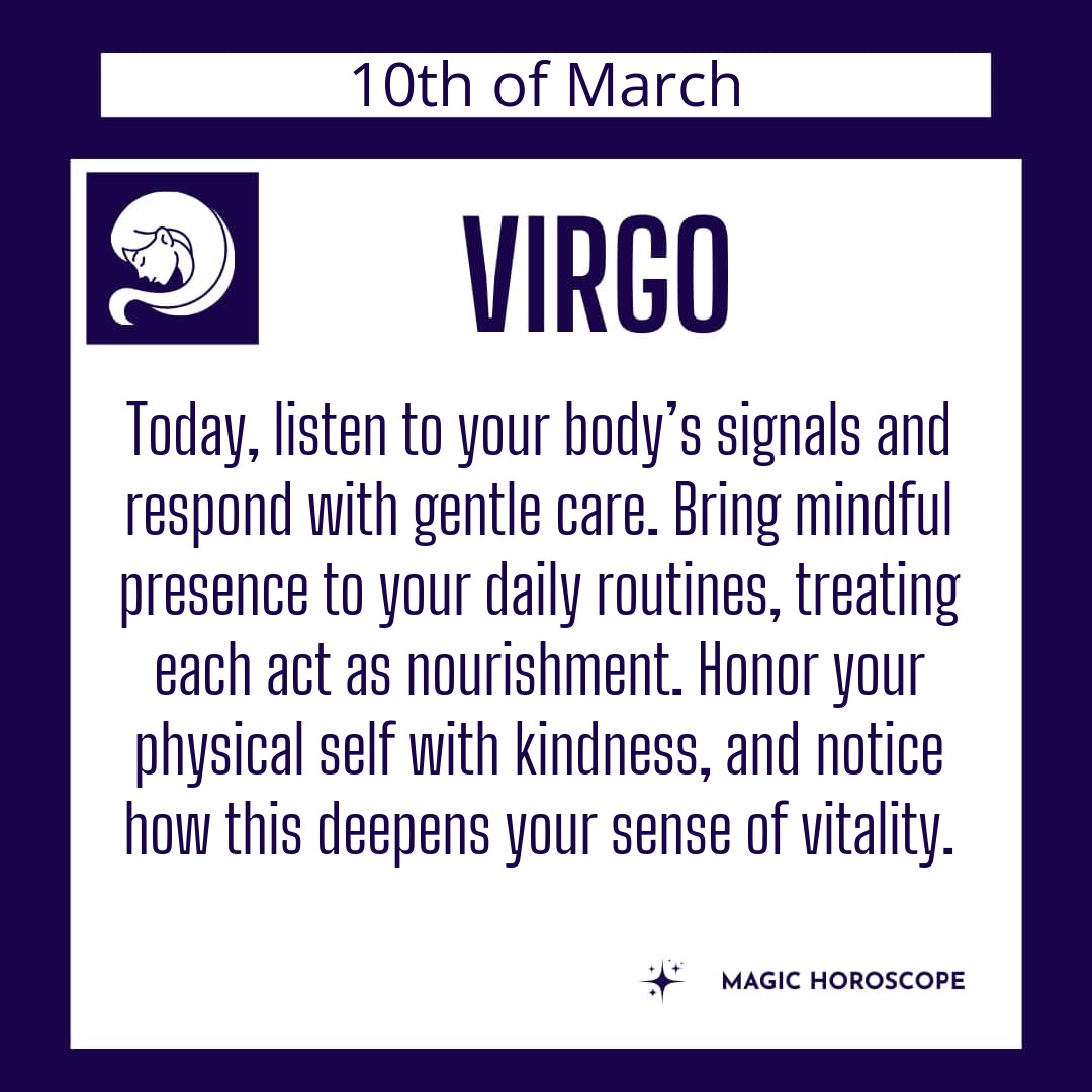 You’re being called to listen to your body today, Virgo. The subtle aches, the tiredness, the hunger for something nourishing—these are not inconveniences, but messages. Your body speaks in whispers before it shouts, and today those whispers are asking for your attention. You often pride yourself on discipline, on pushing through discomfort and meeting your goals, but sometimes that discipline turns into self-neglect, a quiet ignoring of your own needs. Today, pause and check in. What does your body need, not just to function, but to feel alive? Maybe it’s a walk in the fresh air, a glass of water, or a meal that feels like a hug from the inside. Perhaps it’s simply a moment of stillness, a chance to breathe and let your shoulders drop.