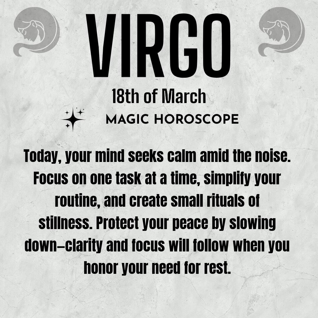 Your mind craves calm today, Virgo. The world can feel noisy and overwhelming, especially when your thoughts are racing in a dozen directions. You may notice how the constant influx of information, the demands of daily life, and the expectations you place on yourself all seem to converge at once, creating a sense of inner chaos. You long for a sense of order—not just in your environment, but in your inner world. This is a day to create space for mental peace, to allow yourself the gentle gift of quietude amid the clamor.