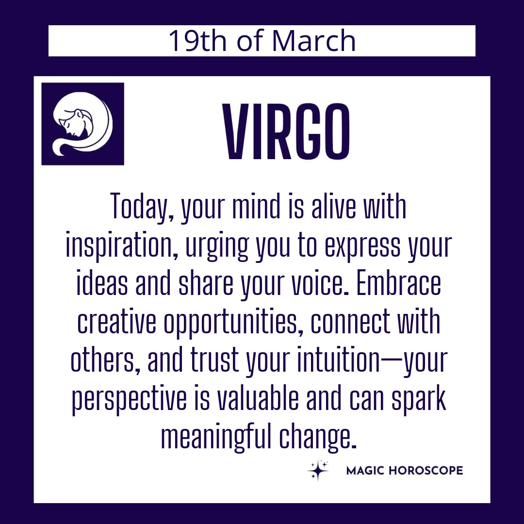 Today, embrace the flow of inspiration and the courage to express yourself fully. Let your ideas breathe and take shape in the world. In doing so, you honor not only your own creative spirit but also the collective energy that binds us all. Trust in the process, Virgo, and watch as your inner light illuminates new paths for yourself and those around you.