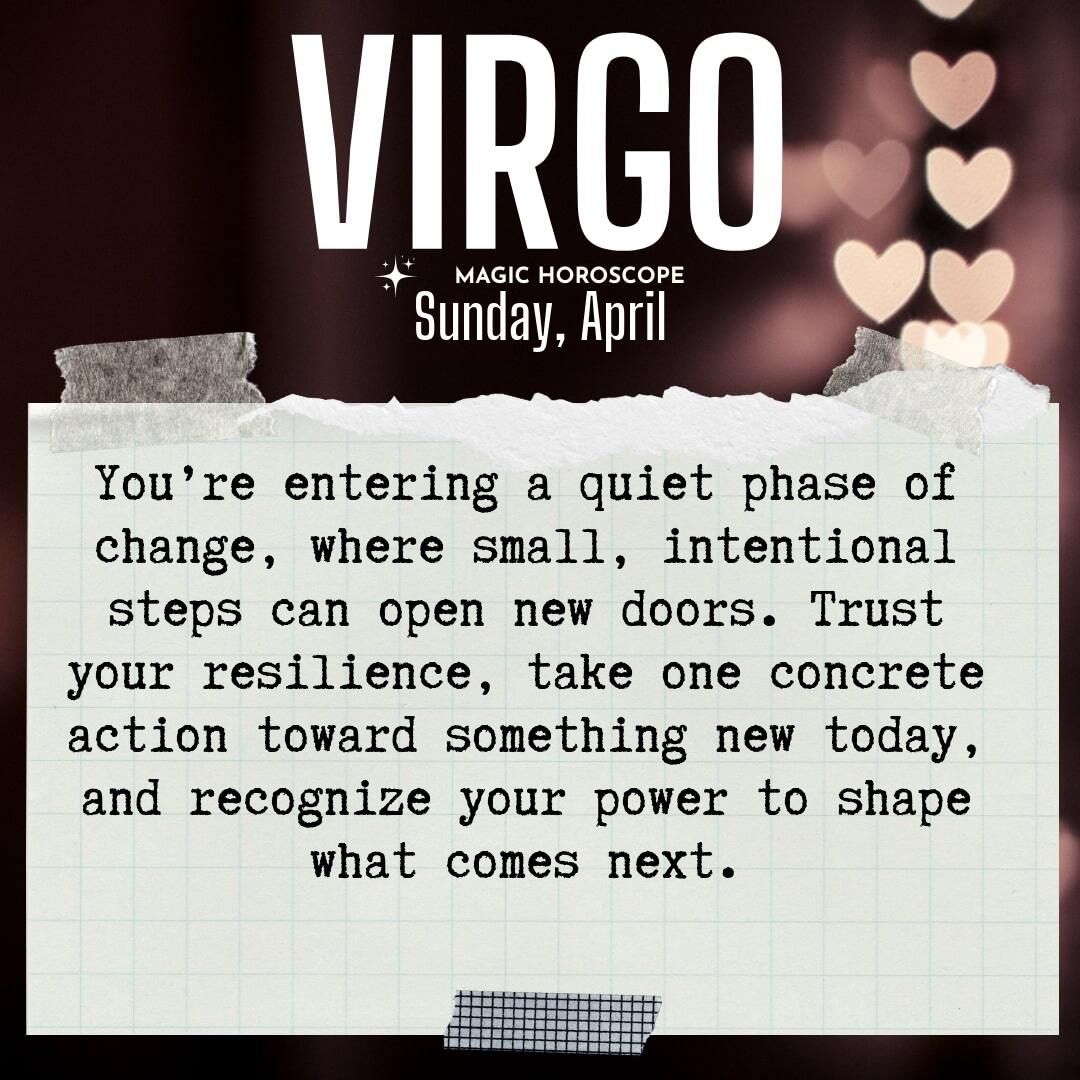 Embrace new beginnings with curiosity and courage—growth awaits just beyond your comfort zone, Virgo.